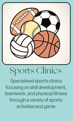 Specialised sports clinics focusing on skill development, teamwork, and physical fitness through a variety of sports activities and game