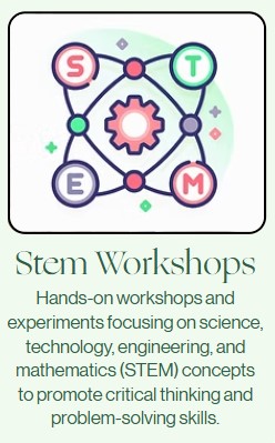 Hands-on workshops and experiments focusing on science, technology, engineering, and mathematics (STEM) concepts to promote critical thinking and problem-solving skills.
