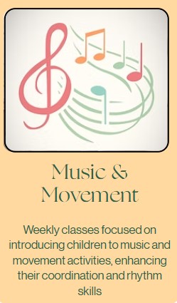 Weekly classes focused on introducing children to music and movement activities, enhancing their coordination and rhythm skills