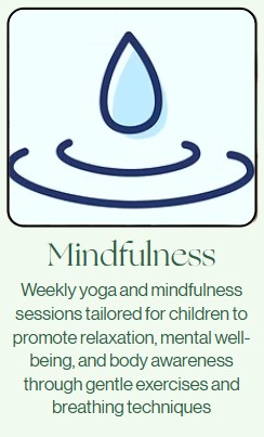 Weekly yoga and mindfulness sessions tailored for children to promote relaxation, mental well-being, and body awareness through gentle exercises and breathing techniques