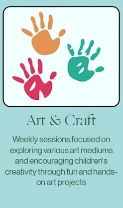 Weekly sessions focused on exploring various art mediums and encouraging children's creativity through fun and hands- on art projects
