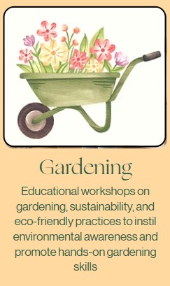 Educational workshops on gardening, sustainability, and eco-friendly practices to instil environmental awareness and promote hands-on gardening skills